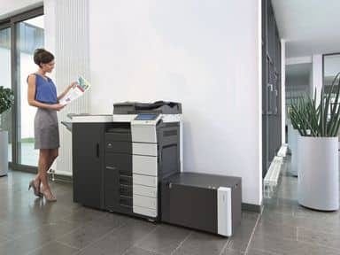 Hoàn thiện: Bấm ghim, dập lỗ, chia bộ… cần cho in số lượng lớn? Chọn các dòng máy lớn có bộ finisher.